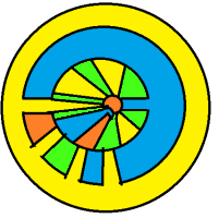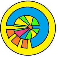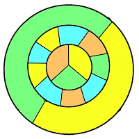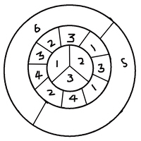 | Liam's map looks like a target with some sneaky extra channels that make it need five different colours... |  | ...but it only needed four! |  |