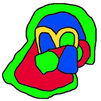 | Ilan Feron sent us this five-colour map. The letter "m" shape makes things a bit more complicated... |  | ...but it only needed four! |  |