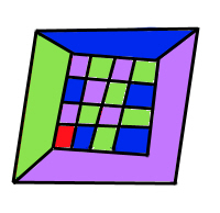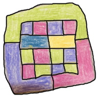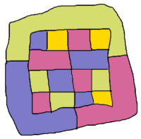 | Shen Yan Xi used five colours on this chequer board map with two sneaky extra rectangles ... |  | ...but it only needed four! |  |