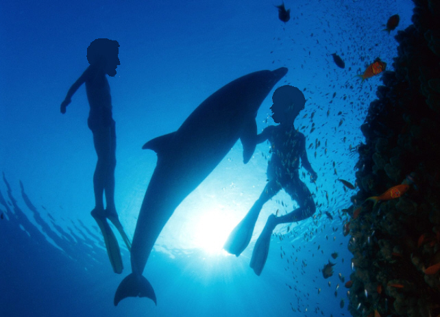 | After Eratosthenes had had a hard day selling ice creams and pondering the tilt of the earth's axis, what better way could there be to unwind than invite Pythagoras to join him swimming with a dolphin?