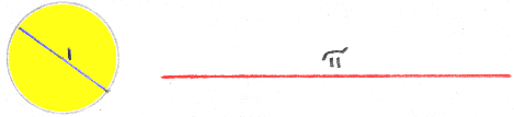 p.   The formula for the area of any circle is pd2 / 4, so if d=1, the area of our circle = p/4. Our first job will be to make a rectangle with this same area. If we have a rectangle measuring p along the bottom and 1/4 up the side then that'll do it! |  2/