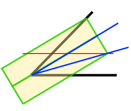 You now draw one line along the middle of the two rulers, and another line that comes from the corner and goes through the lower corner of the rulers. These lines TRISECT your angle exactly! | |||
