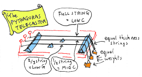 Pythagoras is supposed to be the first person who worked out that neat fractions make music. One day he was passing a blacksmiths and heard some bits of metal being hammered and they happened to strike a nice chord. He loved simple numbers and fractions so when he realised that one bit of metal was exactly 2/3 the length of the other he was utterly delighted. He made a very simple sort of guitar so he could twang the strings and change their length. (The strings had to be the same thickness and they had to be equally tight for his experiments to work.)